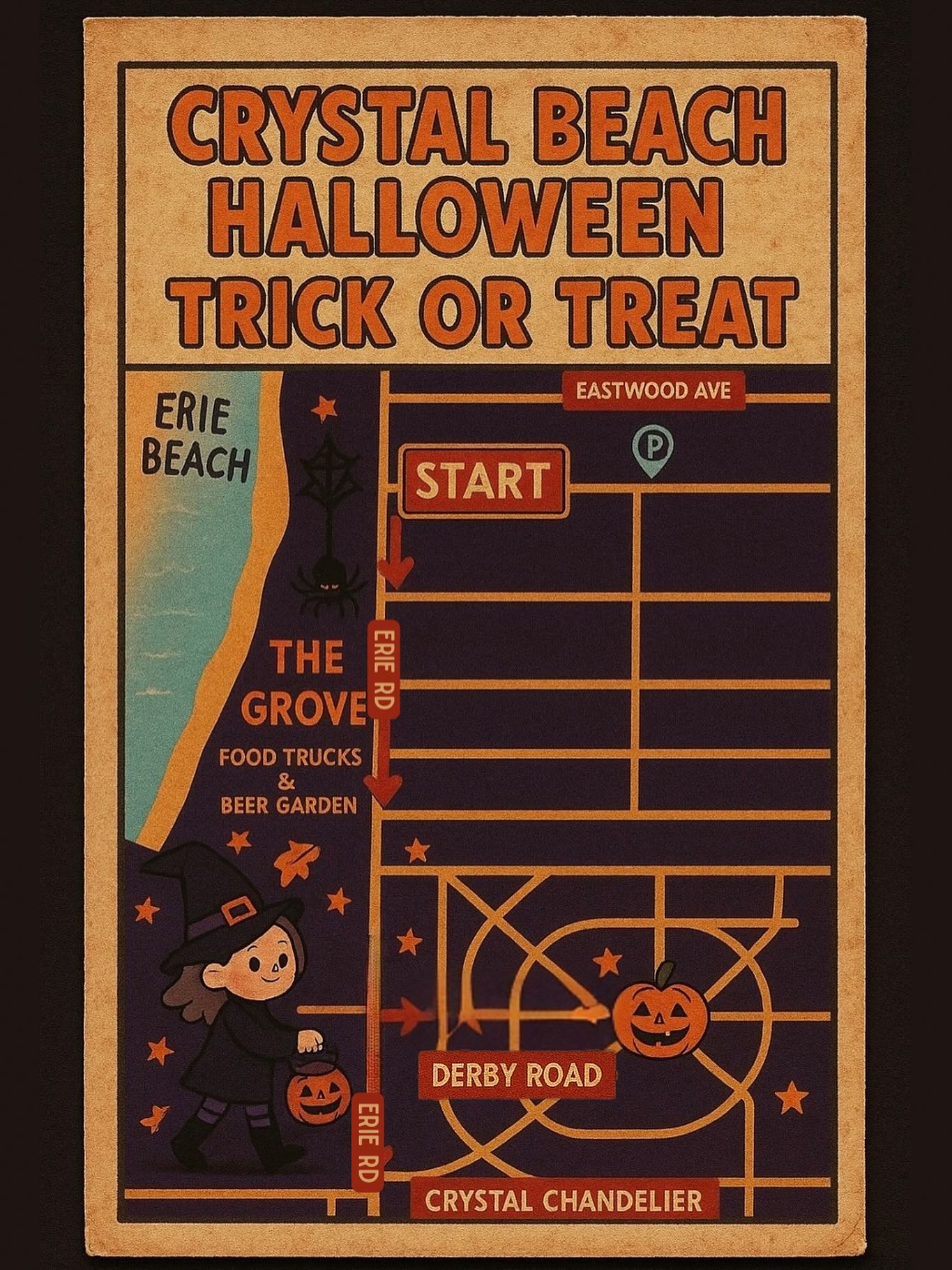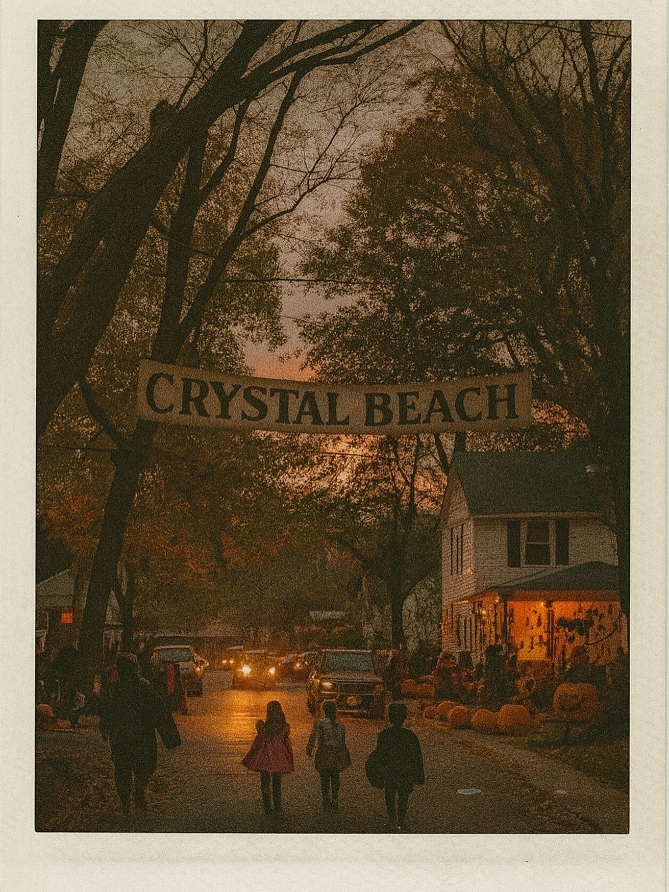 3:00 PM - Trick-or-treat walk begins at Crystal Beach Sign